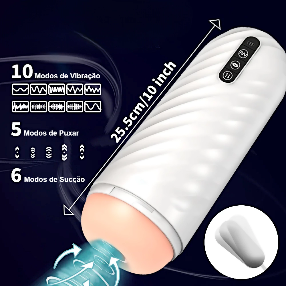 Masturbador para Homens Automático Retrátil Voo Modern, para um prazer sem limites. São 10 diferentes frequencias de vibrações, 6 modos de sucção e mais 5 modos de puxar. Basta se ajeitar para seu melhor conforto e aproveitar momentos unicos, é impossivel não chegar ao apice da ejaculação. Totalmente automático e com material extremamente confortável, basta um pouquinho de lubrificante e pronto, sua diversão esta garantida.