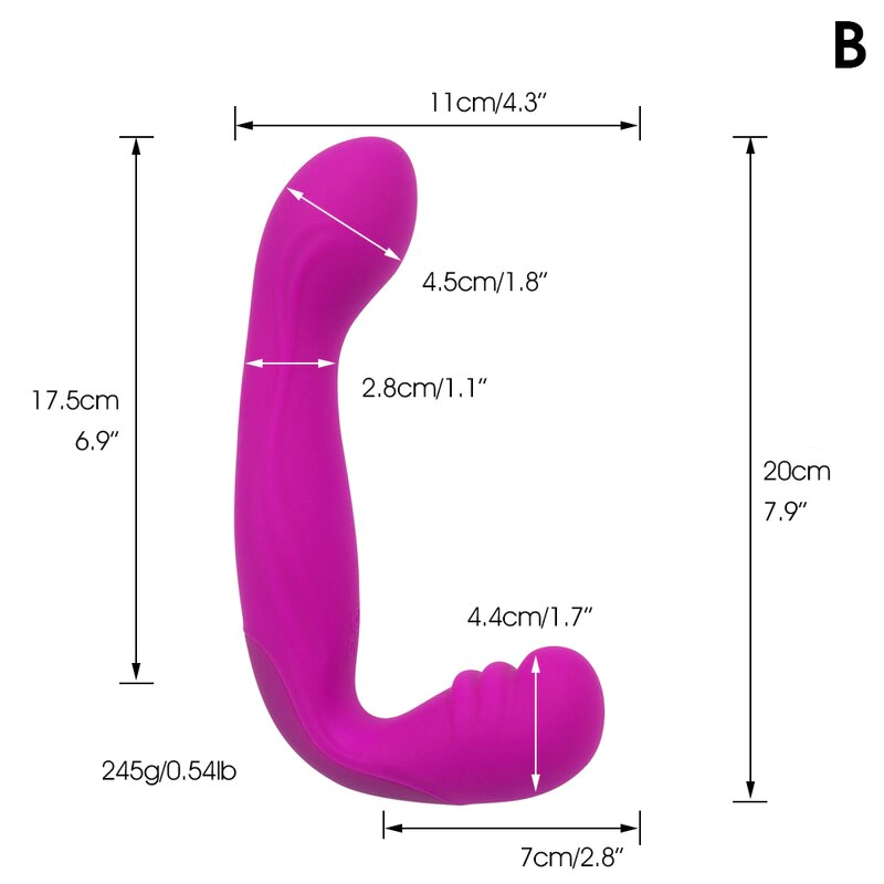 Descubra a alegria de dar quando você ou seu parceiro escorregar neste vibrador duplo elegante, sem alças e vibratório. Seu design ergonômico apresenta uma lâmpada ampla e ondulada que estimula o ponto g do usuário e 7.5 polegadas de eixo de silicone liso para o receptor.
